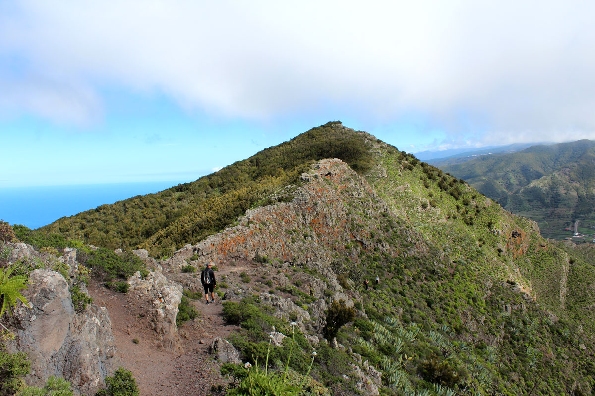 - Auf dem Baracán. Der Berggrat teilt den feuchteren grünen Norden vom sonnigeren, spärlicher bewachsenen Süden.